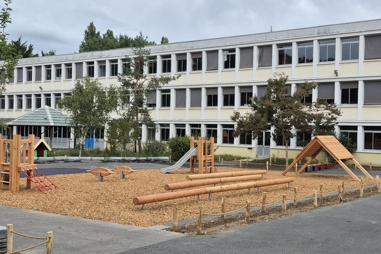 Pour le groupe scolaire Honoré d’Estienne d’Orves, on nous vend une « cour oasis ». En vrai ? Un coup de peinture, quelques arbres, deux-trois jeux. Pas de vraie réflexion sur la fraîcheur, la végétalisation ou l’accessibilité. Ça ressemble plus à une déco vite faite pour la photo qu’à une transformation en profondeur.